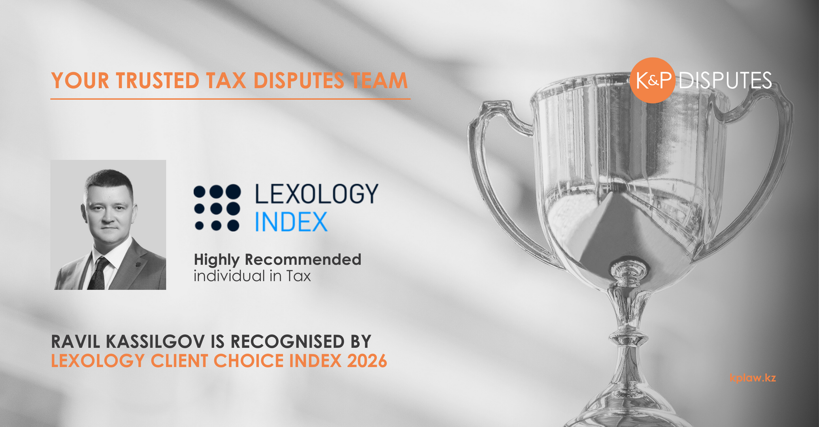 Managing Partner of KP Disputes, Ravil Kassilgov, has been recognised as a “Highly Recommended individual in Tax” for the Lexology Client Choice Index 2026, a ranking grounded in real client feedback and consistent professional performance.
